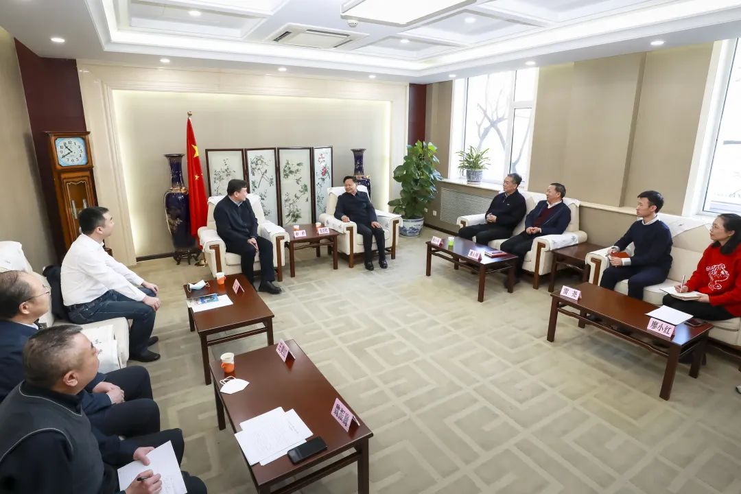 2月8日上午, 张崇和会长会见伊春市工信局党组书记、局长申勇一行,双方就推动伊春市以木艺和家具业为代表的轻工业高质量发展进行了深入交谈。 纪委书记陶小年参加会谈。