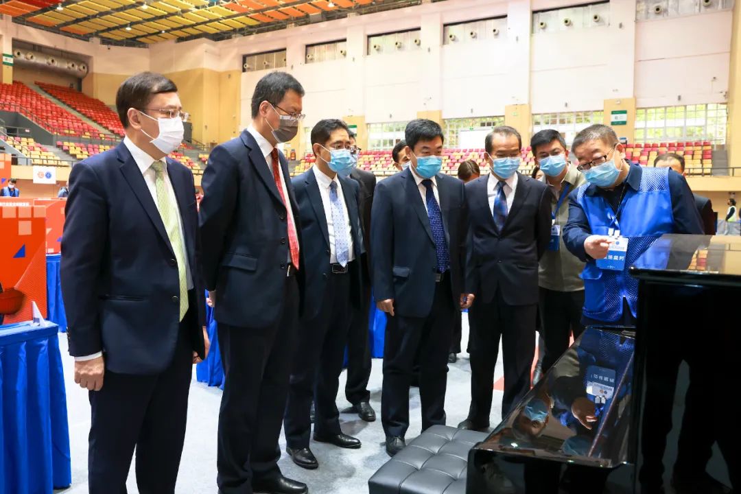开幕式后,领导嘉宾先后来到六大赛项决赛现场,听取各赛项裁判长对参赛人数、比赛时长、比赛规程的介绍,详细了解大赛情况。