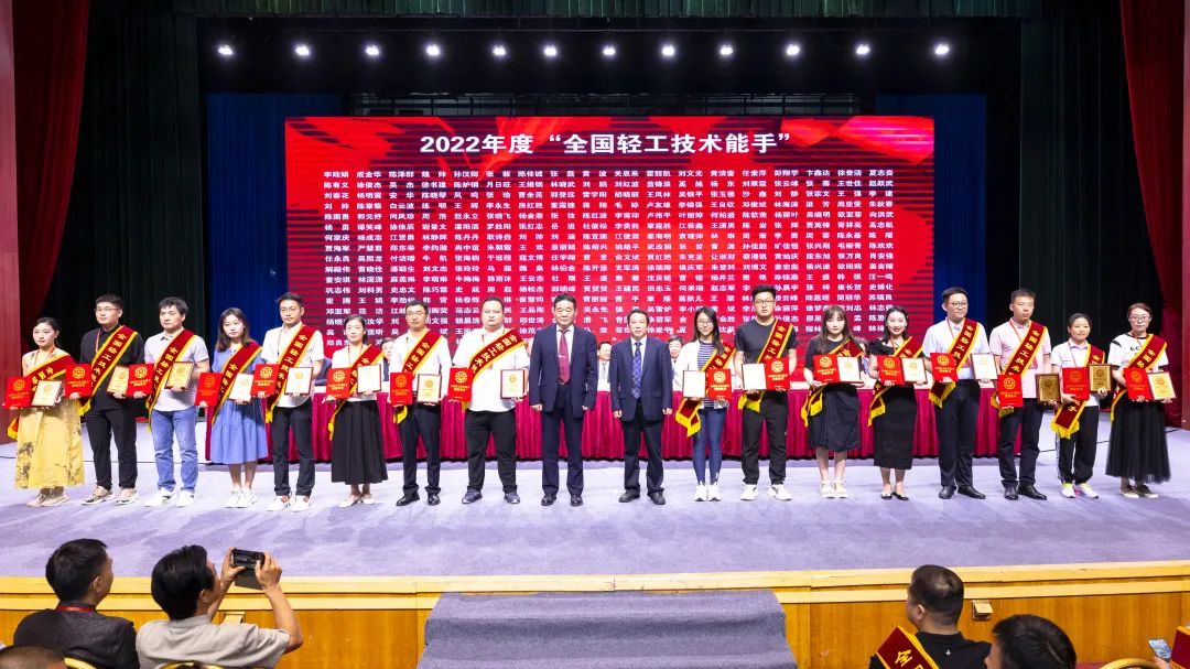 大会为2022年 “全国五一劳动奖章”获得者举行了颁奖仪式;为获得2022年“全国轻工技术能手”荣誉称号的优秀选手和全国轻工第二届互联网营销师获奖选手进行表彰。