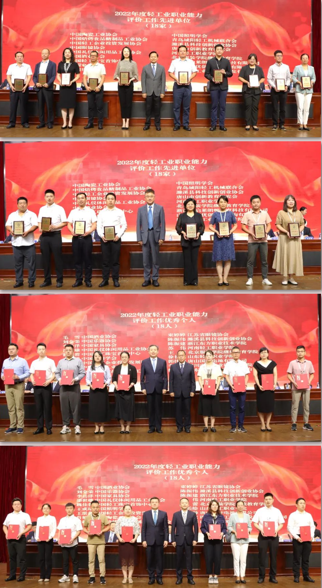 大会授予中国陶瓷工业协会等18家单位“2022年度轻工业职业能力评价工作先进单位”称号;授予肖艳娜等18人“2022年度轻工职业能力评价工作优秀个人”称号;授予包琴等18人“2022年度轻工职业能力评价优秀考评员”称号。