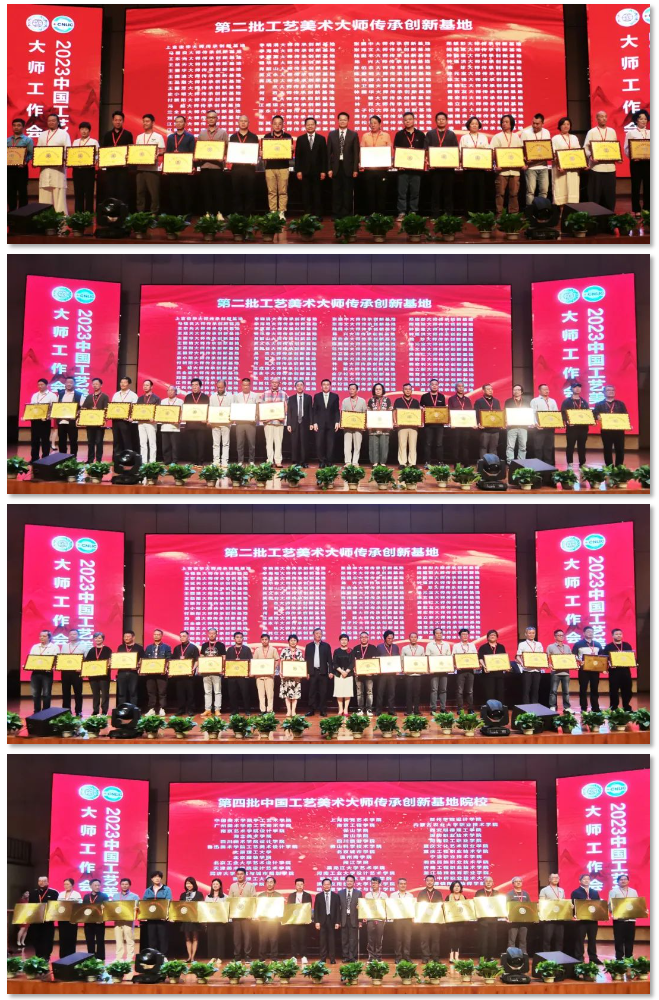 大会为第二批61家工艺美术大师传承创新基地、第四批40所“中国工艺美术大师传承创新基地院校”授牌。