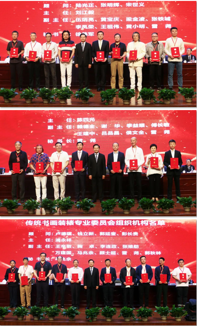 大会为新成立的雕刻艺术专委会、陶瓷艺术专委会、传统书画装裱专委会组织机构成员颁发聘书。