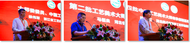 中国工艺美术大师委员会委员、中国工艺美术大师代表徐伟军,第二批工艺美术大师传承创新基地代表马福良,第四批中国工艺美术大师传承创新基地院校代表、湖北美术学院手工艺学院副院长、博士生导师陈日红交流发言。