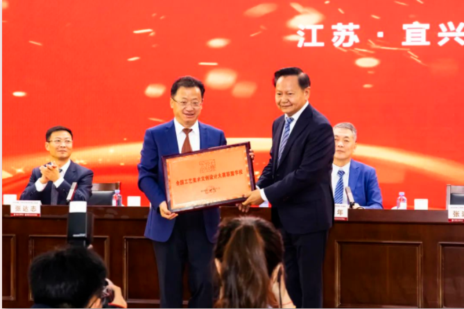 关心支持下,宜兴的工艺美术产业发展迅速。希望以本次大会为契机,推动中华传统文化创造性转化、创新性发展,加快工艺美术人才培养和队伍建设,加大工艺美术在文创产业的深度融合,以新的理念、新的手段助力工艺美术行业高质量发展,更好地满足人民对美好生活的向往。