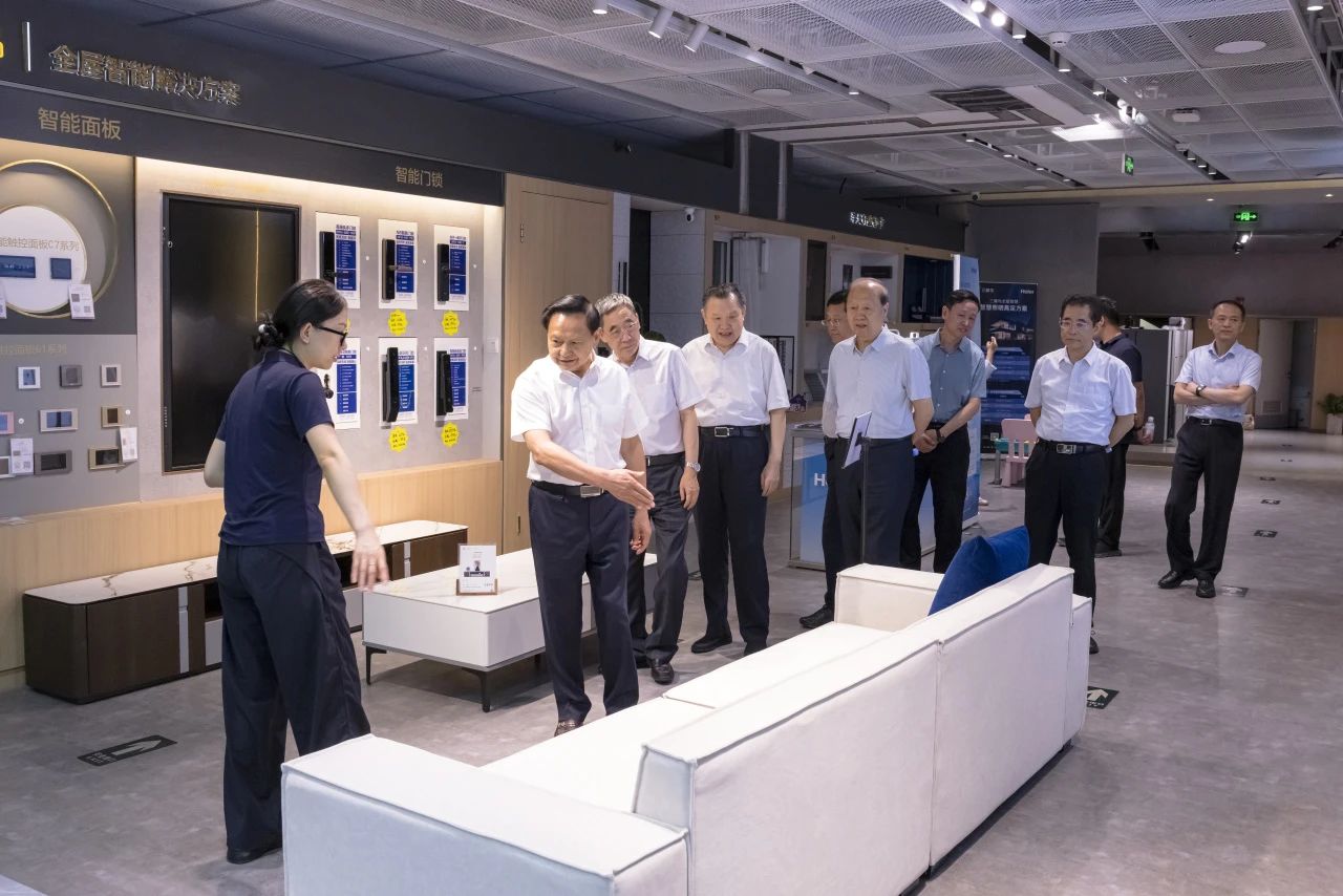 9月3日, 会长张崇和一行前往 副会长单位海尔集团,先后对海尔智家三翼鸟青岛体验中心001、国家高端智能化家用电器创新中心(以下简称“国创中心”)进行实地调研,重点考察高端智能化家电领域的最新进展,尤其关注家居适老化改造和国产芯片研发、检测的突破性成果。