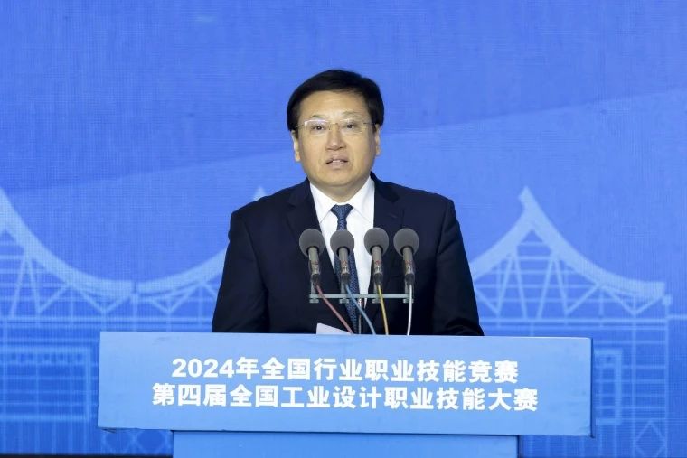 刘江毅代表 和大赛组委会致辞。刘江毅表示,职业技能大赛是培养选拔高水平技能人才的有效机制,是推动制造业高质量发展的有力引擎。本届大赛在人社部和全国总工会指导下,在中国财贸轻纺烟草工会支持下,实现了赛项更新、领域延伸,新增了小型家用电器制造工赛项,为更多工业设计人才搭建了竞赛成才的舞台。本次大赛精心策划、周密部署,先后组建了6个大赛工作组、6个专家工作组,组织召开技术工作对接会20余次、编印竞赛规程等各类文件9万余字、命题6000余道,向上千名参赛选手和教练开展技术培训。郑州航空港区管委会、河南省人力资源和社会保障厅全力以赴,积极承担起承办重任,为大赛的顺利举行提供了全方位、高质量地支持与保障,创造了极为有利的比赛条件。