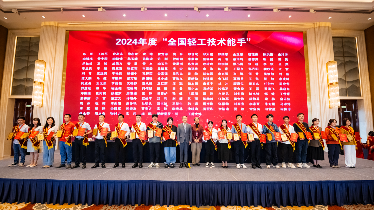 大会对获得2024年“全国轻工技术能手”荣誉称号的优秀选手进行表彰。大会授予中国陶瓷工业协会等5家单位“2024年全国行业职业技能竞赛轻工大赛优秀组织单位”荣誉称号,授予河北省总工会等17家单位“2024年全国行业职业技能竞赛轻工大赛突出单位”荣誉称号;授予邯郸市教育局等23家单位“2023—2024年度全国行业职业技能大赛轻工技能人才培育突出贡献单位”荣誉称号。大会还对全国行业技能竞赛轻工大赛优秀裁判员进行表彰。并为一批获奖代表授牌。