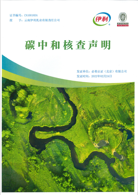 其中,云南伊利乳业有限公司于2021年获得了中国乳业乃至食品行业的第一张“绿色用电凭证”,于2022年2月22日完成碳盘查并通过CCER,完成工厂2021年度碳中和,实现二氧化碳“净零”排放。