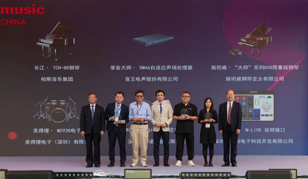 与会领导向获得“最佳新品”的企业颁发了奖杯,以此鼓励、嘉奖企业在乐器制造创新领域的贡献。这些企业不仅代表了行业的前沿技术和发展方向,更推动着整个乐器领域的进步和繁荣。
