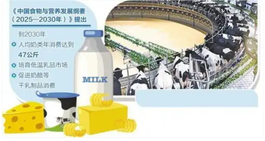 今年年初,农业农村部、国家卫生健康委、工业和信息化部3部门印发的《中国食物与营养发展纲要(2025—2030年)》提出,到2030年,人均奶类年消费达到47公斤,培育低温乳品市场,促进奶酪等干乳制品消费。当前,推动奶酪发展进入更高层次恰逢其时。