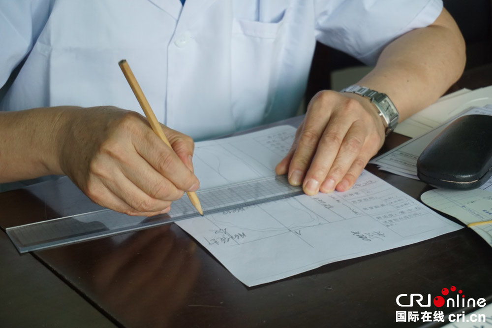 陈国学根据脚型测量图设计鞋楦。摄影:聂峥