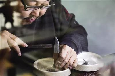 手工匠人正在雕花