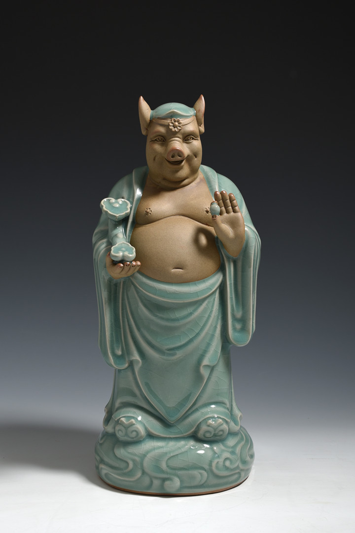 王军港还是营销的一把好手。受小时候集邮、集火柴花的启示,王军港萌发了创作十二生肖守护神的创意。十二生肖守护神在中国道教文化里,拥有美好的寓意。农历狗年,王军港制作了500尊人身兽面的狗年生肖守护神青瓷,一经推出,就受到了青瓷收藏者的追捧。