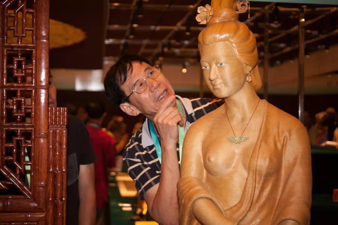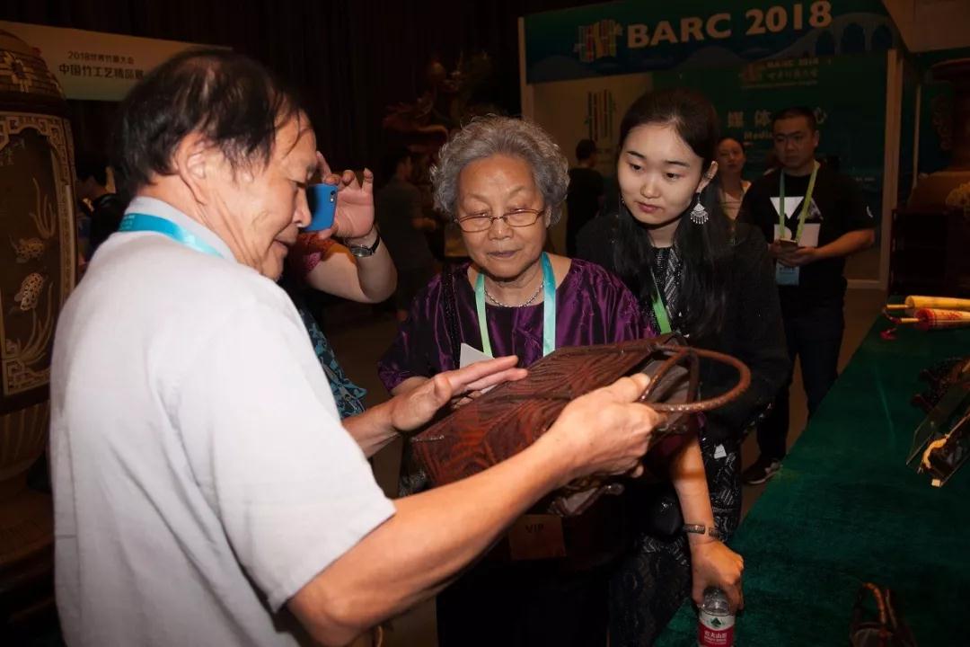中国竹工艺精品展在世界竹藤大会第一天展出时就得到了包括国际竹藤组织总干事费翰思及众多国际友人的参观,并不时驻足观赏听取创作者的创作理念,表现出对中国竹工艺极其浓厚的兴趣,并与参展的众多竹工艺大师、竹工艺创作者合影留念。