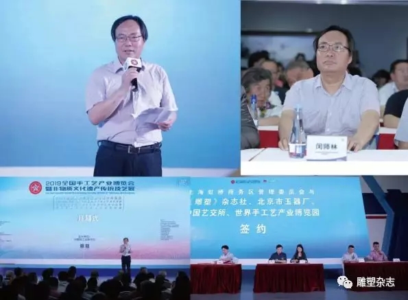 嘉宾集体为“2019 全国手工艺产业博览会暨非物质文化遗产传统技艺展”暨“2019全国高校毕业生优秀雕塑作品展”、“2019全国当代陶瓷绘画美展暨朔源审美趋势展”、“献礼建国七十周年”全国手工艺精品展、泛长三角工艺美术邀请展启幕
