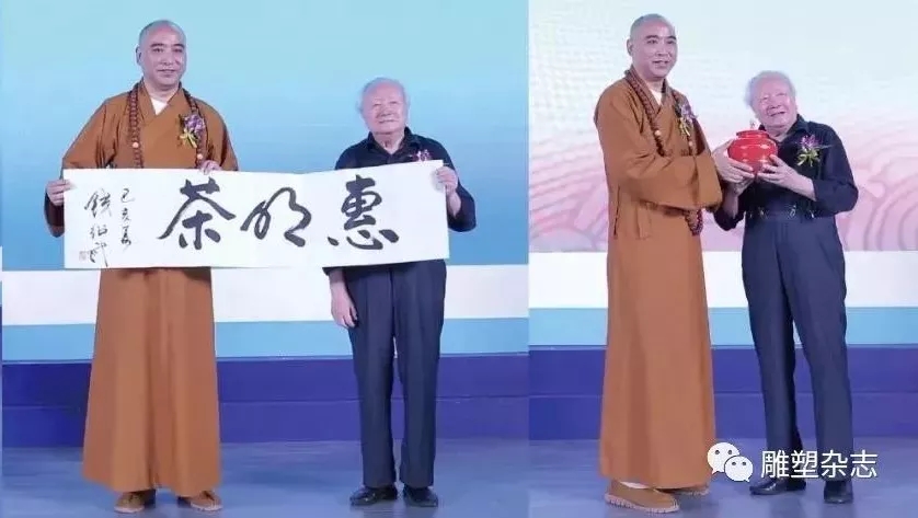 著名雕塑家钱绍武先生与慧明大和尚互赠礼