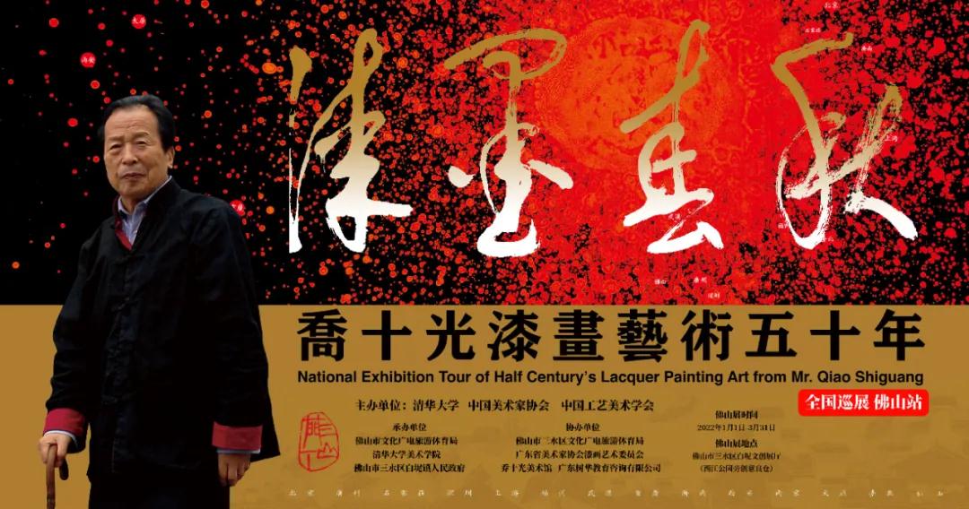 2022年1月1日上午,由清华大学、中国美术家协会、中国工艺美术学会主办,佛山市文化广电旅游体育局、清华大学美术学院、佛山市三水区白坭镇人民政府承办,佛山市三水区文化广电旅游体育局、广东省美术家协会漆画艺术委员会、乔十光美术馆、广东树华教育咨询有限公司协办的“漆墨春秋——乔十光漆画艺术五十年全国巡展佛山站”在佛山白坭文创古镇展出。清华大学美术学院原副院长、教育部艺术教育委员会常委、清华大学张仃艺术研究中心、吴冠中艺术研究中心副主任兼秘书长卢新华教授担任漆墨春秋巡展总策展人,清华大学乔十光漆画艺术创新奖组委会副秘书长、乔十光美术馆执行馆长、广州立盈文化艺术策划服务有限公司总经理宁腾飞担任执行策展人。