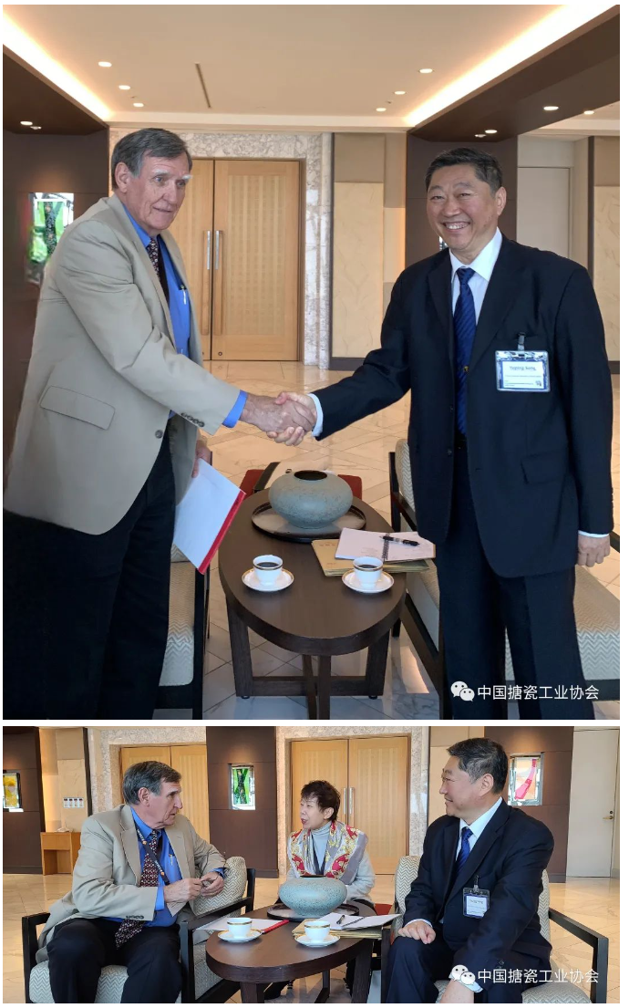 会议期间,中国搪瓷工业协会理事长宋玉平与国际搪瓷(珐琅)协会秘书长Cullen L. Hackler进行了会谈。宋玉平理事长致以了诚挚问候和良好祝愿,他指出国际搪瓷大会是世界搪瓷人的盛会,它是连接大家的桥梁和纽带,希望大会越办越好。会谈中双方主要围绕如何深入开展国际间搪瓷(珐琅)技术的交流与合作交换了意见。