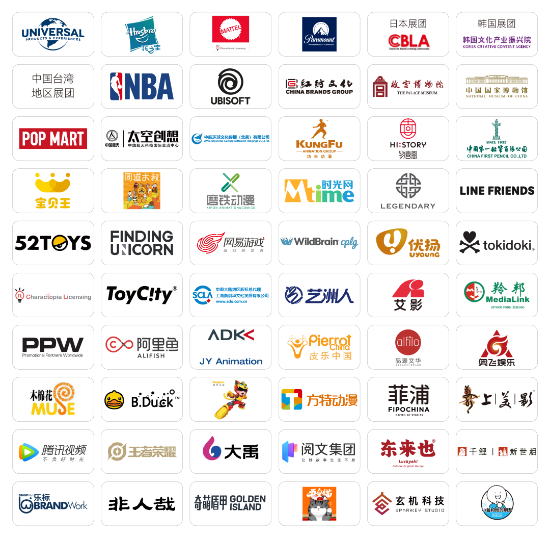 将在2023 CLE中国授权展独家/首选亮相的国内外知名IP和机构包括:小黄人、变形金刚、小猪佩奇、芭比、宝可梦、奥特曼、面包超人、Hello Kitty、LINE FRIENDS、派拉蒙、传奇影业、哆啦A梦、史努比、天线宝宝、网易游戏、王者荣耀、超级飞侠、熊出没、猪猪侠、故宫博物院、中国国家博物馆、大英博物馆、泡泡玛特、Smiley等。