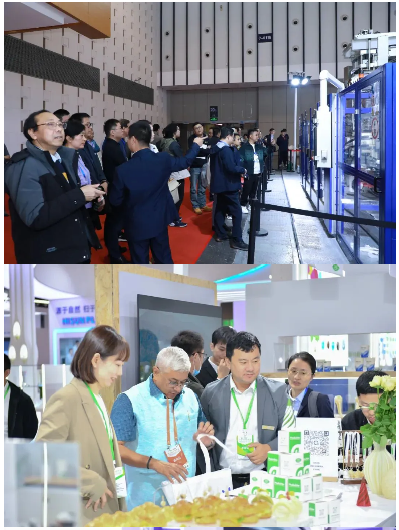 据不完全统计,本届展会现场成交和合作意向额达53.8亿元,京腾昊桦、临沂互为机械厂等多家参展企业斩获订单。大学院所参展团通过现场对接,实现多项科研成果落地或达成合作意向。此外,地方政府招商团、地方集群展团在本届展会中同样收获颇丰。近年来,随着国家双碳发展战略的稳步实施,与此密切相关的可循环、易回收、可降解绿色设计主题展位及相关制品成为众多买家关注的焦点。