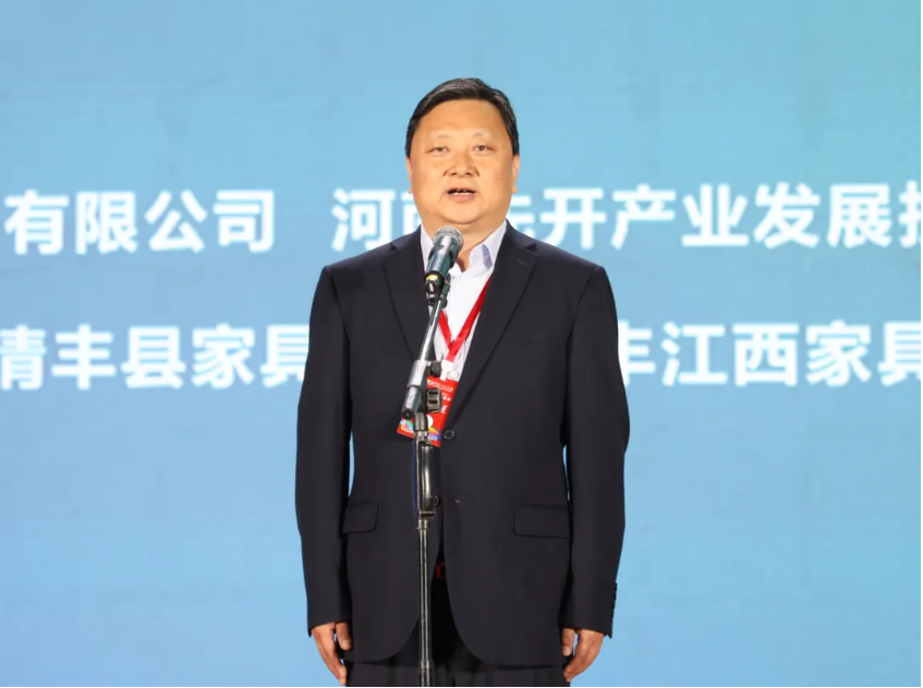清丰县委书记高尚功致欢迎词。他介绍,清丰县位于冀鲁豫三省交界处,县域面积828 平方公里,辖17个乡镇、503个行政村、75万人,是国家乡村振兴示范县、国家(食用菌)现代农业产业园、中国中部家具生产基地。近年来,在濮阳市委、市政府的坚强领导下,清丰持续壮大现代家居第一主导产业,已成功举办七届家博会,本届家博会的举办,特别得到了中国家具协会的专业指导、亮点纷呈。清丰将以展会为契机,聚焦“四高四争先”,聚力制造业倍增行动,深化“双招双引”,优化营商环境,以更加开放的姿态,欢迎广大企业家、海内外朋友来清丰投资兴业、创新创造、共赢发展。