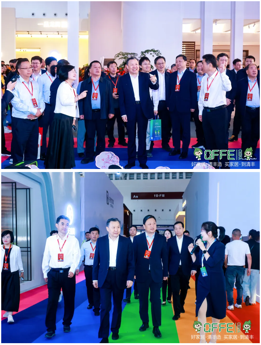 开幕式后,领导嘉宾巡馆参观博览会各大展位,听取参展企业汇报,交流行业发展需求与解决方案。领导嘉宾对本届展会的展区升级、展品创新以及全产业链生态构建给予了高度评价。同期走访丽曼俪、鑫富源、谊木印橡等清丰代表企业,考察软体、酒店、实木等品类的发展情况。