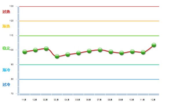 2013年12月自行车行业景气指数103.4