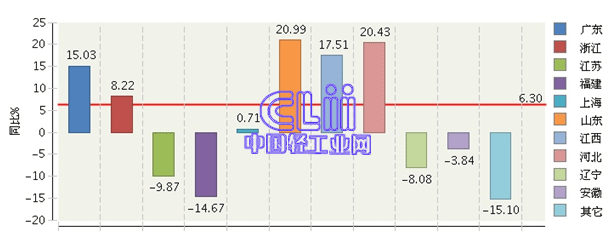 图7 2013年主要地区家具行业累计出口值增速情况