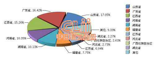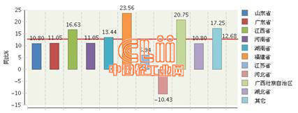 2014年1~2月全国陶瓷行业规模以上企业累计完成主营业务收入前三位地区是山东、广东、江西,其中:山东累计完成主营业务收入同比增长10.8%;广东累计同比增长11.05%;江西累计同比增长16.63%,详见图1。