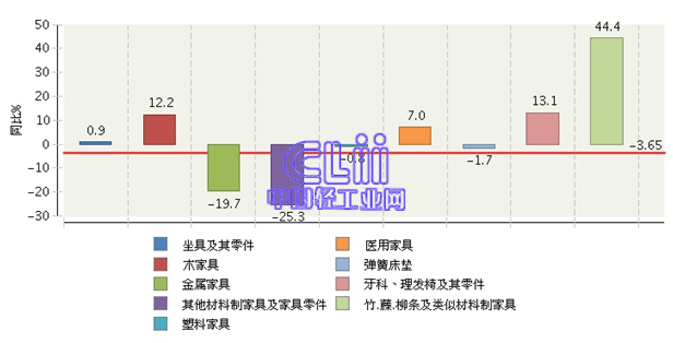 图5 2014年1~7月家具行业主要商品累计出口值增速情况
