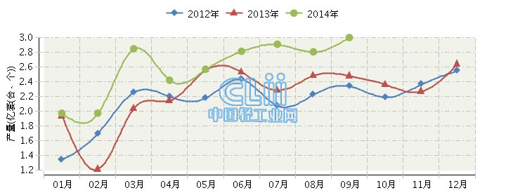 2014年全国白炽灯泡行业连续三年月度产量对比