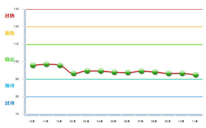 图2 2013.10—2014.11 五金行业景气指数变化态势