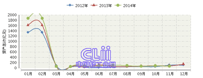 2014年全国家具行业月度资产总计及同比