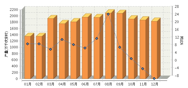 根据国家统计局公布数据,2014年1~12月全国铅酸蓄电池行业累计完成产量同比增长4.58%。其中:12月份完成产量同比增长-7.87%。2014年全国铅酸蓄电池行业月度产量及同比如下图所示。