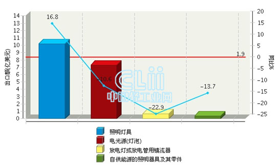 2014年上海照明行业累计出口额同比增长1.90%