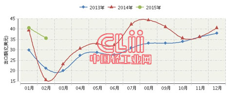 2015年全国照明行业连续三年月度出口额对比