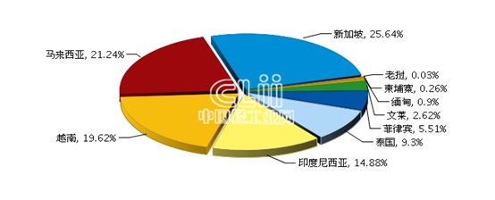 在东盟十国中,新加坡、马来西亚、越南、印度尼西亚、泰国是我国照明行业对东盟出口额排在前五位的国家。其中:新加坡完成累计出口额3.68亿美元,同比增长191.29%。