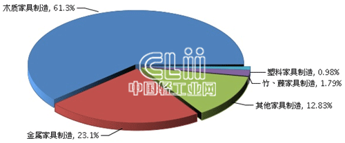 图4  2014年1~11月家具子行业规模以上企业累计利润总额占比情况