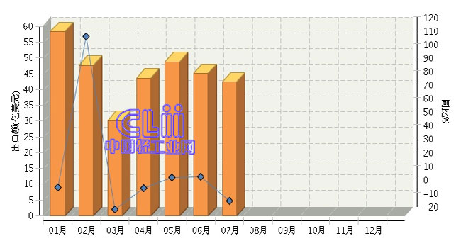 2015年1~7月我国家具行业出口累计同比增长8.00%