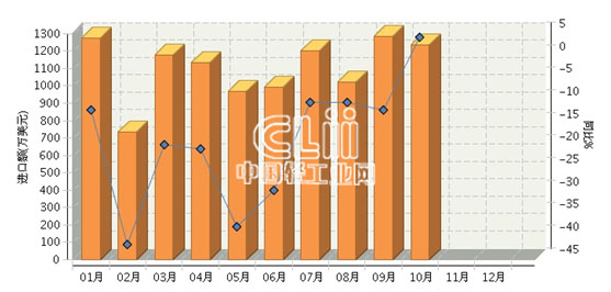 2015年1月~10月,全国灯具及照明装置零件行业累计完成进口额11,011.46万美元,同比增长-19.45%。其中: 10月份完成进口额1234.05万美元,同比增长4.14%。