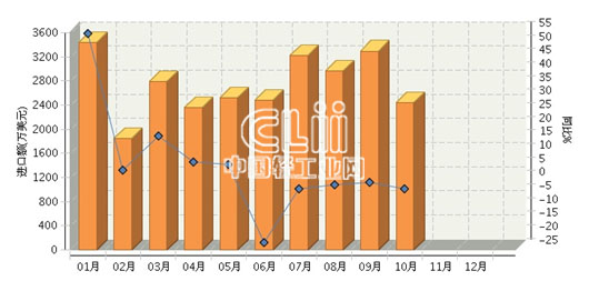 2015年1~10月,全国灯具及照明装置行业累计完成进口额27,331.50万美元,同比增长4.29%。其中: 10月份完成进口额2435.14万美元,同比增长-2.61%。