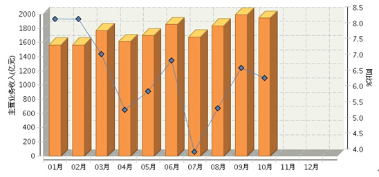 2015年1~10月全国食品行业累计主营收入同比增长6.51%