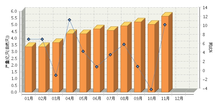 根据国家统计局公布数据,2015年1~11月,全国锂离子电池行业累计完成产量同比增长-0.57%。其中:11月份完成产量同比增长-3.4%。2015年全国锂离子电池行业月度产量及同比如下图所示。