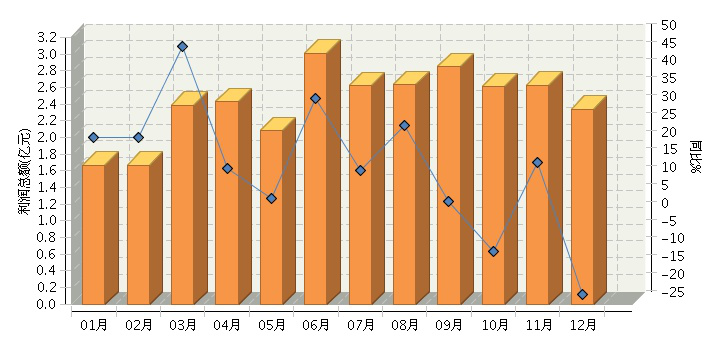 ——利润总额月度走势:10月和12月份月度利润额出现同比下降。2016年1~12月,全国乐器行业累计完成利润总额28.93亿元,同比增长10.67%。其中:3月份利润额同比增长47.53%;4月份同比增长13.15%;5月份同比增长4.71%;6月份同比增长32.78%;7月份同比增长12.59%;8月份,同比增长25.32%;9月份同比增长3.86%;10月份同比下降10.21%;11月份同比增长14.74%;12月份利润总额2.34亿元,同比下降22.32%。