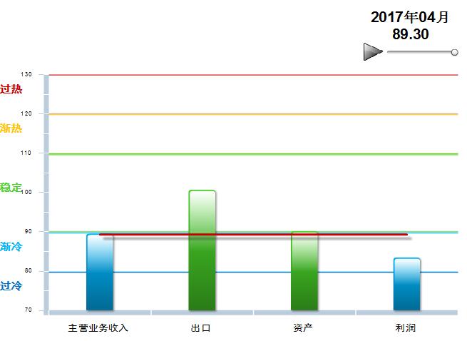 2016年3月至2017年4月,中轻皮革景气指数基本稳定,在90附近小幅波动,处于渐冷提示区运行(参见图3)。