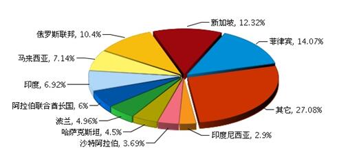 2017年1月~3月,全国玩具行业对一带一路国家累计出口额同比增长32.13%。出口比重主要集中在菲律宾、新加坡、俄罗斯联邦、马来西亚、印度、阿拉伯联合酋长国、波兰、哈萨克斯坦、沙特阿拉伯、印度尼西亚等地区。