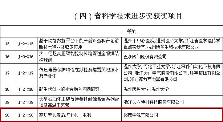 超威集团一科研项目获浙江省科学技术进步二等奖