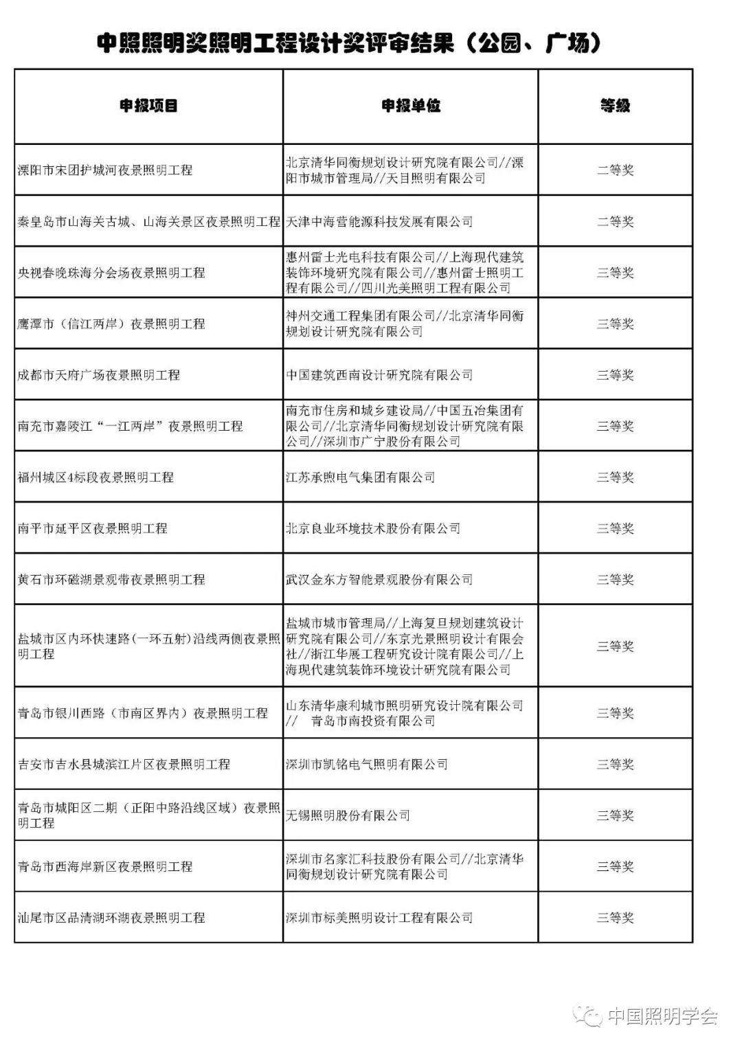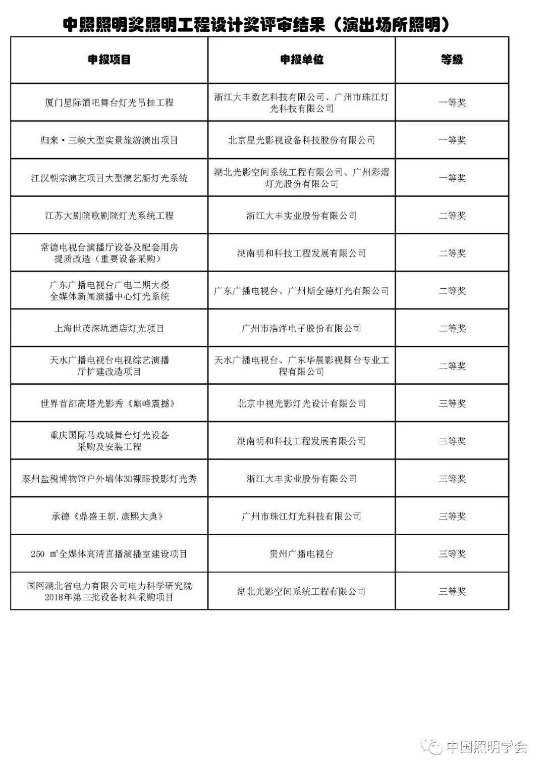 中国照明学会第十四届“中照照明工程设计奖”评审结果公示