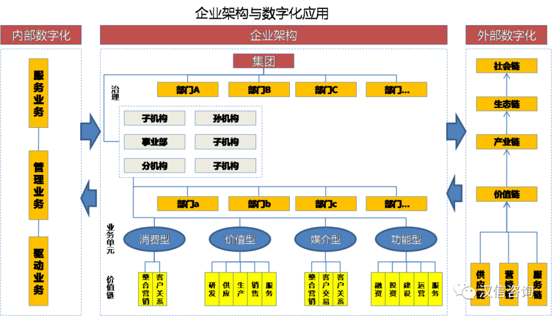 企业内部数字化解决了价值创造的过程,这些必须通过和外部的交往才能形成价值,所以企业数字化必须有外部数字化的协同,否则就形成了信息孤岛。