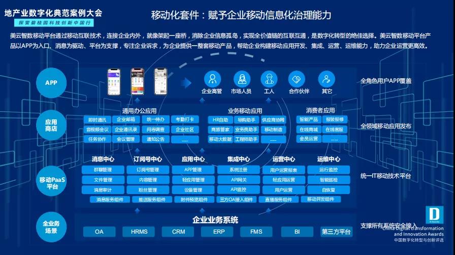 美云智数移动平台通过移动互联网技术,连接企业内外,就像架起一座桥,消除企业信息孤岛,实现全价值链的互联互通,是数字化转型的绝佳选择。美云智数移动平台产品以APP为入口、消息为驱动、平台为支撑,专注企业诉求,为企业提供一整套产品,帮助企业构建移动应用开发、集成、运营、运维能力,助力企业运营更高效。